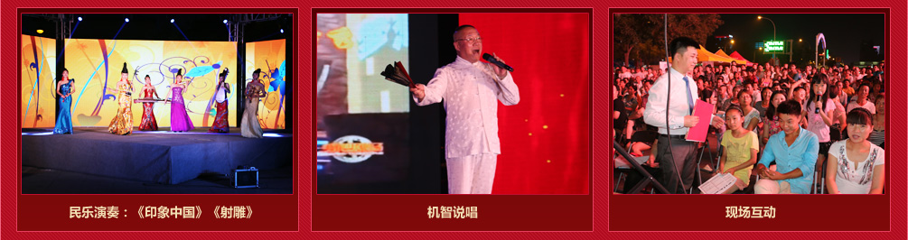 7月19日晚19:30分,由廊坊市文化廣電新聞出版局、廊坊市工商業(yè)聯(lián)合會(huì)主辦的2014“歡樂城鄉(xiāng) 文化惠民”民企之聲文藝晚會(huì)在新華路京客隆廣場盛大開幕。7月19日至9月21日期間每周六、日晚,主辦單位均選擇一家較有實(shí)力的民營企業(yè)承辦活動(dòng),以各承辦單位自編自演的節(jié)目為主,通過歌曲、舞蹈、相聲、小品等演藝形式展示企業(yè)風(fēng)采。
