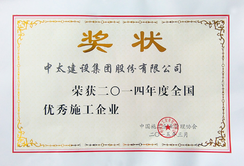 近日,由中國施工企業(yè)管理協(xié)會(huì)傳來喜訊,中太建設(shè)集團(tuán)被評為“2014年度全國優(yōu)秀施工企業(yè)”。