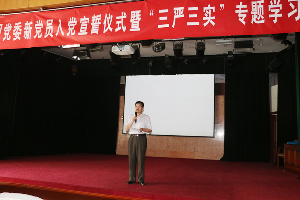 講座開始前,集團黨委副書記鐘崇鶴同志就本次黨員學習教育專題講座的意義進行了闡述,并代表集團黨委對新黨員提出了希望,就黨員管理人員如何“踐行‘三嚴三實’、打造高效團隊”提出了要求。鐘崇鶴同志指出,新黨員是各級黨組織的新鮮血液,也是在黨的事業和中太各項工作中涌現出來的優秀分子。在此,我代表集團黨委向新黨員同志們提出五點希望和要求:一是希望新黨員要不斷增強入黨的光榮感和責任感,堅定對黨的信念,要把為人民服務的宗旨牢記在心;二是要始終以黨員的標準規范嚴格要求自己,不但在組織上入黨,還要在思想上入黨,使自己真正成為合格的共產黨員;三是在工作崗位中,以身作則,率先垂范,起先鋒模范作用,具有高尚的職業道德,忠于職守,正確履行自己的崗位職責;四是要不斷學習,提升自己的履職能力和素質,只有不斷加強政治理論和業務知識的學習,才能具有較高的政治理論素質、堅定正確的政治方向;五是嚴格要求自己,不斷提高自己保護和防范能力,從自我做起,從小事做起,在今后工作中,嚴守黨的紀律,更好的發揮黨員先鋒模范作用。