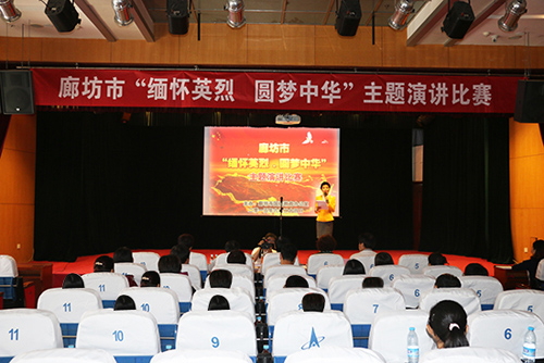 6月24日上午,由廊坊市國防辦主辦、中太建設集團協辦的廊坊市“緬懷英烈 圓夢中華”主題演講比賽在中太大廈二樓報告廳舉行,中太建設集團員工陳東宏與來自廊坊各縣市區、市直單位的18名選手展開激烈角逐,最終以99.33分的高分榮獲演講比賽的一等獎。
