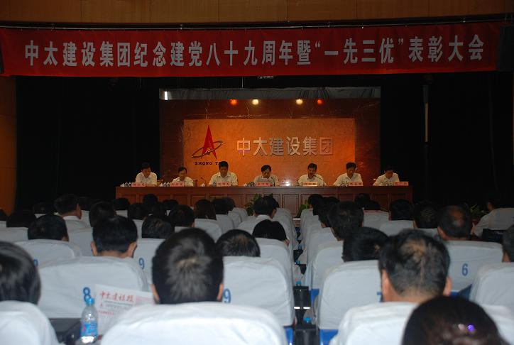 6月26日上午,中太建設集團在大廈二樓報告廳隆重召開紀念中國共產黨成立89周年暨“一先三優”表彰大會。公司黨委書記李文健做重要講話。建設集團機關黨組織等6個“先進基層黨組織”、趙廣懷等36名“優秀共產黨員”、鐘崇鶴等5名“優秀黨務工作者”、閆建薇等11名“優秀黨小組長”分別受到表彰。大會由公司黨委副書記鐘崇鶴主持。