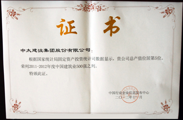 發布時間:2013/2/1 瀏覽次數:3782 次 來源:中太建設集團股份有限公司
