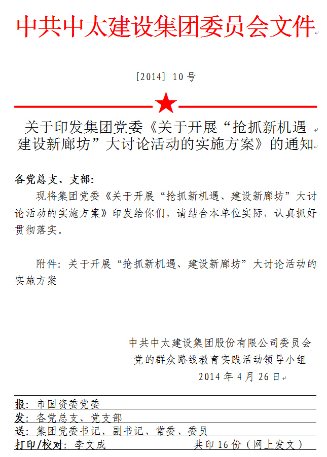 (三)統籌協調推進。堅持系統思維、辯證思維,搞好統籌,突出重點,全面做好工作。把開展大討論活動同開展黨的群眾路線教育實踐活動結合起來,同貫徹落實中央、省市委和國資委黨委一系列重要會議精神結合起來,同落實市委五屆六次全會、市“兩會”及中太年初以來重要會議的重點工作安排部署結合起來,同推進中太經濟建設與和諧健康發展緊密結合起來,做到兩手抓、兩不誤、兩促進。